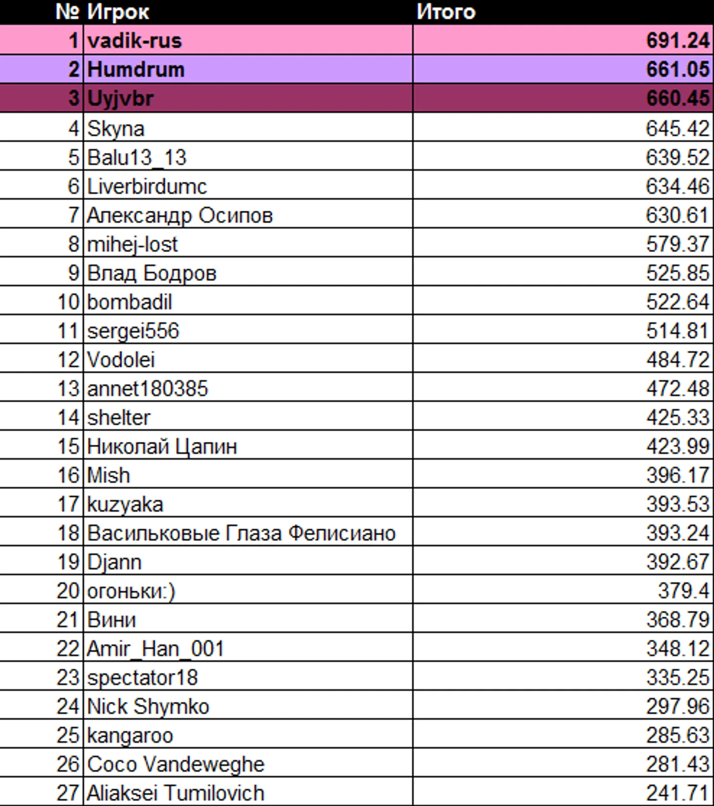 * Не забываем поздравлять чемпионов турнира в коментариях к посту ведь на их месте в любой момент можете оказаться и вы  :)