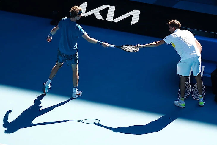 Месяц назад в четвертьфинале Australian Open Даниил Медведев взял первый сет у Андрея Рублева, а в середине второго на подаче у него с ракетки слетел не только мяч, но и виброгаситель – и потерялся где-то на стороне соперника.