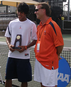 – Когда она его встретила, она словно увидела, что за человек будет обо мне заботиться следующие четыре года, – говорит Девварман. – Думаю, ей стало легче, да и мне стало радостнее, потому что я понял во что я влезаю, и он показался мне человеком слова. Девварман поступил в Вирджинский Университет с годом 2004-05 вместе с другими талантливыми новичками, такими как Трет Хьюи, первая ракетка USTA, и сейчас он вспоминает: