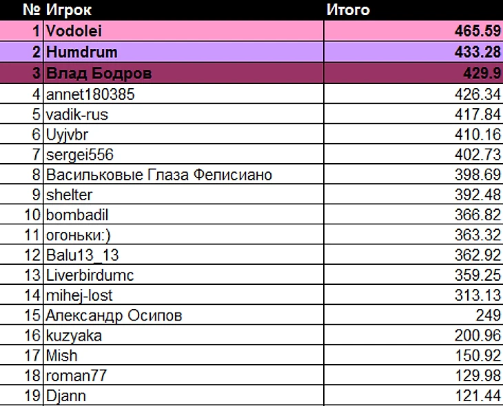 "Прогресс" недели и самый большой подьем вверх на 6 позиций был у Vodolei