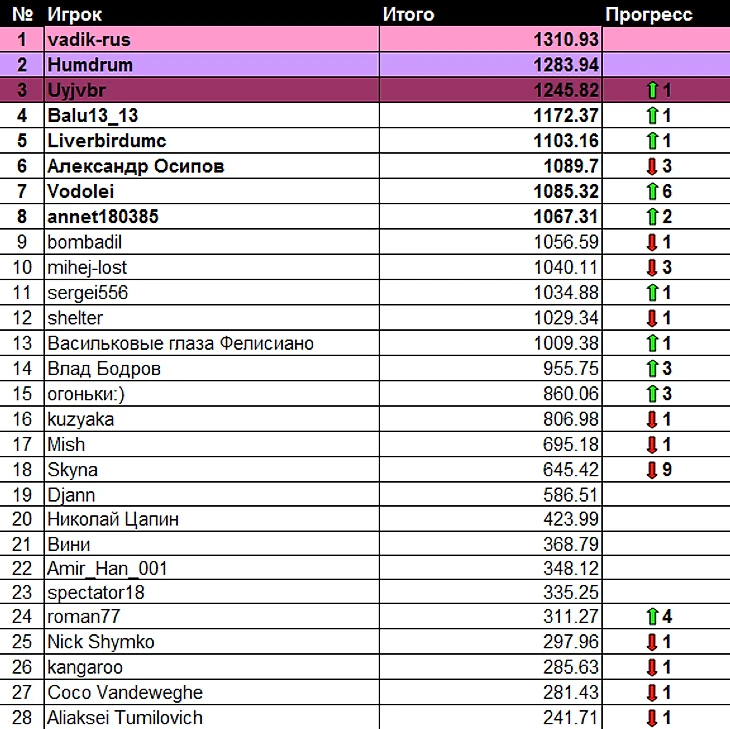 А самое большое падение вниз в чемпионской гонке у Skyna (-9 позиций)