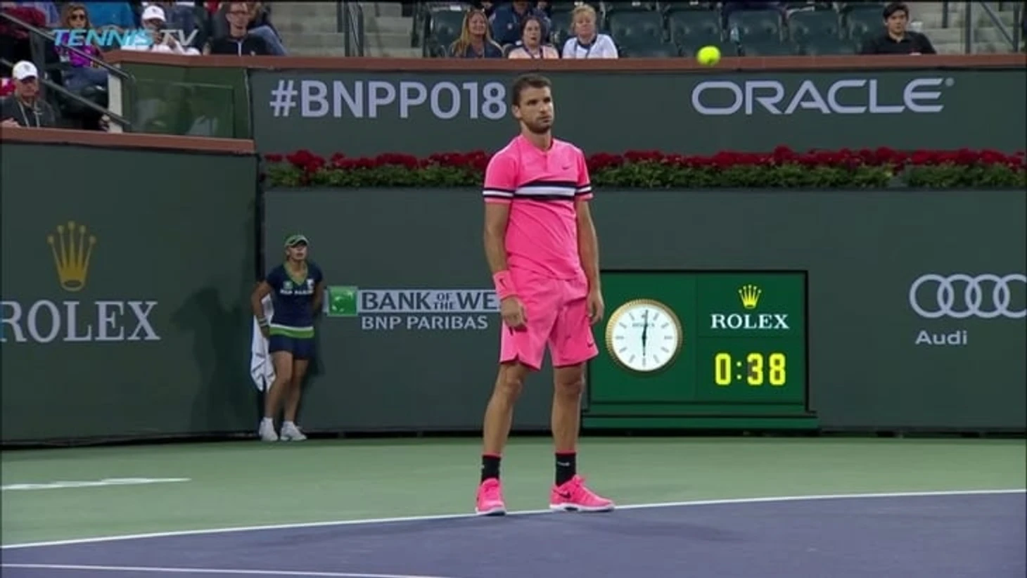 Комментаторы предлагали Димитрову отбить рукой, но это ему бы не помогло: по правилам, игрок проигрывает очко, если касается мяча чем-либо, кроме ракетки.