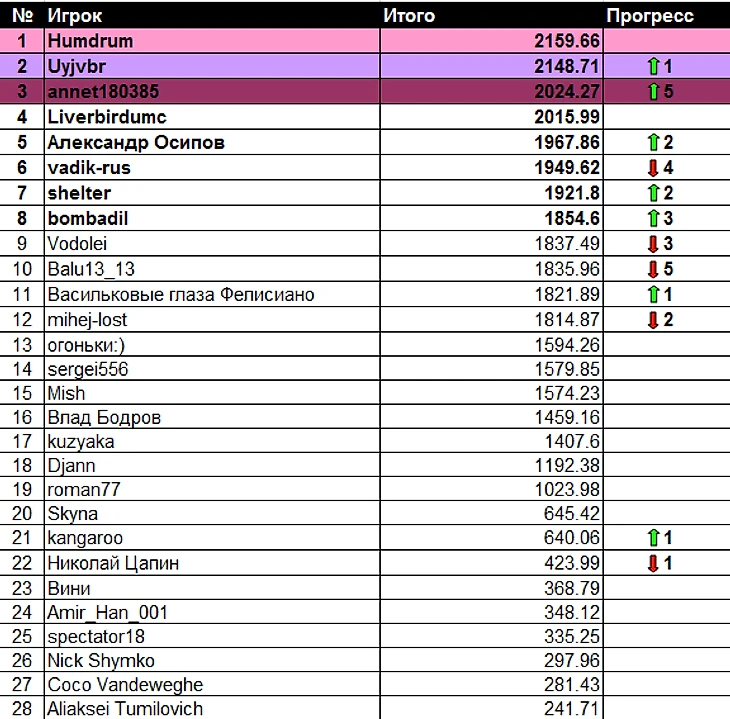 А самое большое падение вниз в чемпионской гонке у Balu13_13 (-5 позиций)