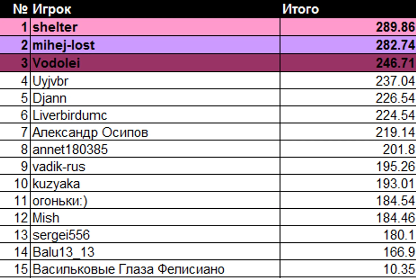 *Дорогие друзья простите пожалуйста за задержку итогов была очень загруженная неделя