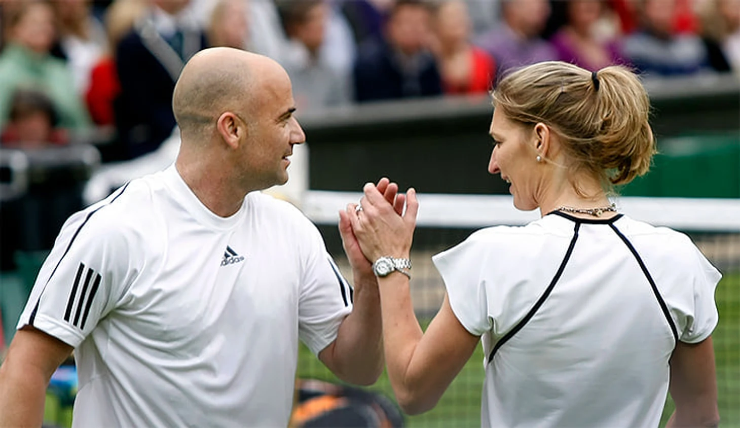 Агасси и Граф – главная теннисная пара. На двоих они выиграли 30 «Больших шлемов» (она – 22 из них) и провели 478 недель на первых строчках рейтингов (она – 377). Кроме того, они составляют половину имеющихся в истории обладателей Золотых карьерных Шлемов – все ТБШ и Олимпиада (причем Граф в 1988-м собрала календарный Золотой Шлем, когда выиграла все эти титулы за год).