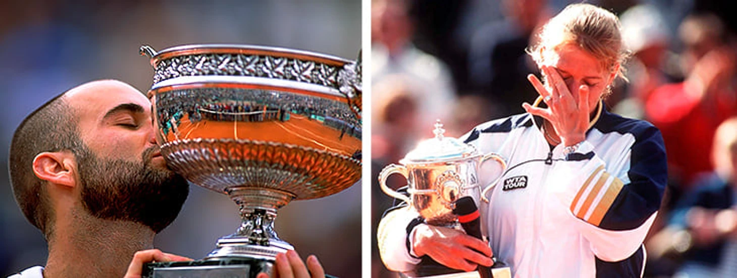 В том году в Париже Агасси выиграл титул после двух поражений в финалах (1990, 1991). Этой победой он оформил карьерный Большой Шлем – всего пятым в истории мужского тенниса. По ходу финала против Андрея Медведева американец отыгрался с 0:2 по сетам. Граф, в свою очередь, на том «Ролан Гаррос» взяла первый «Шлем» с 1996-го и последний в карьере – в финале отыграв сет и брейк у Мартины Хингис.