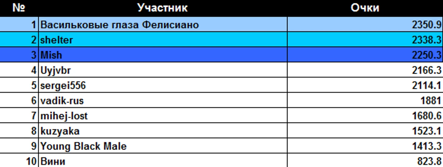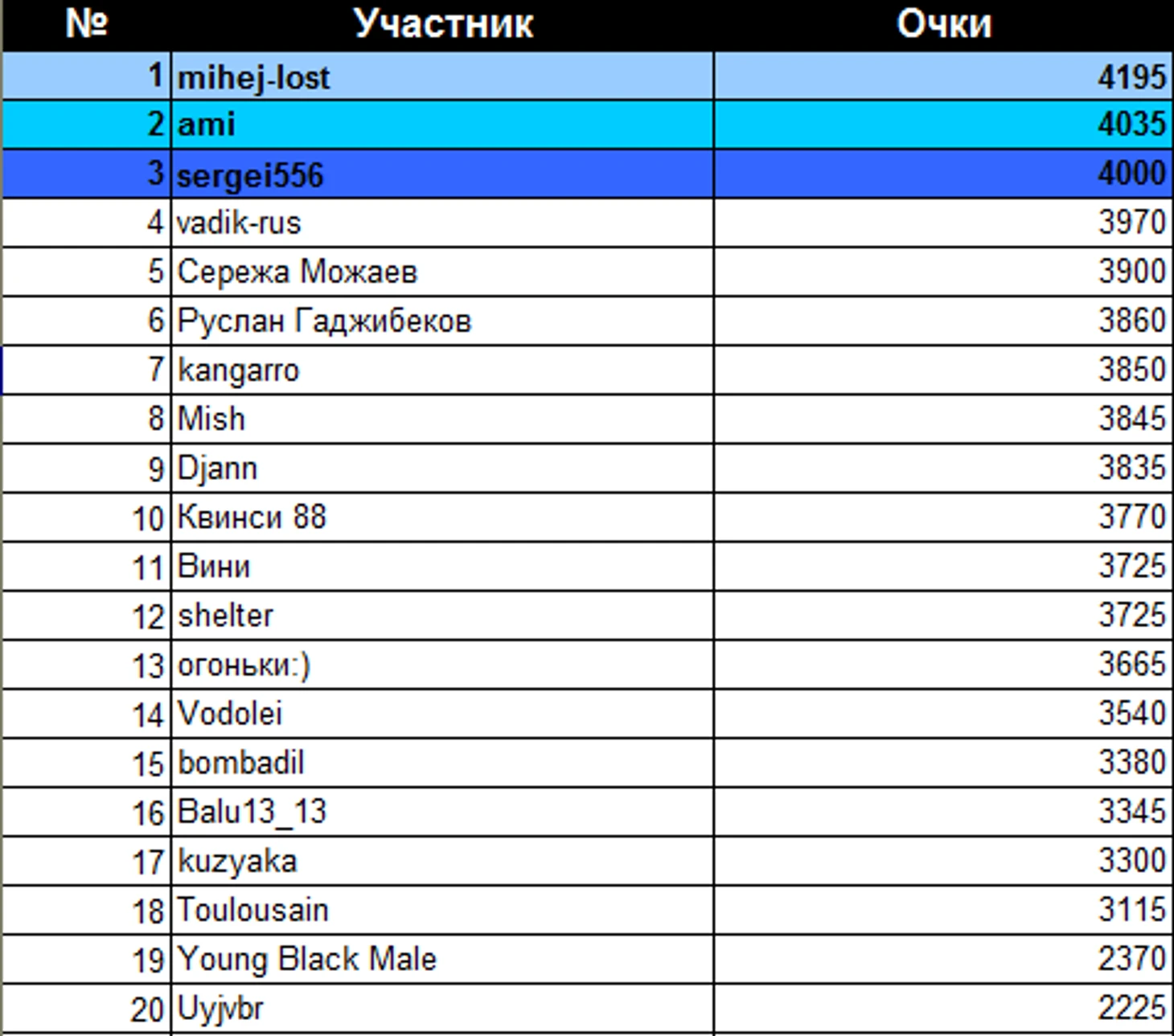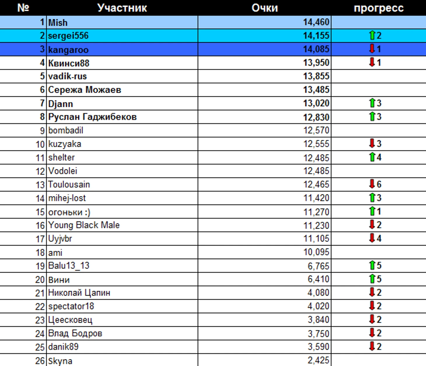На этой недели самый большой подьем вверх на 5 позиций был у Balu13_13 и Вини
