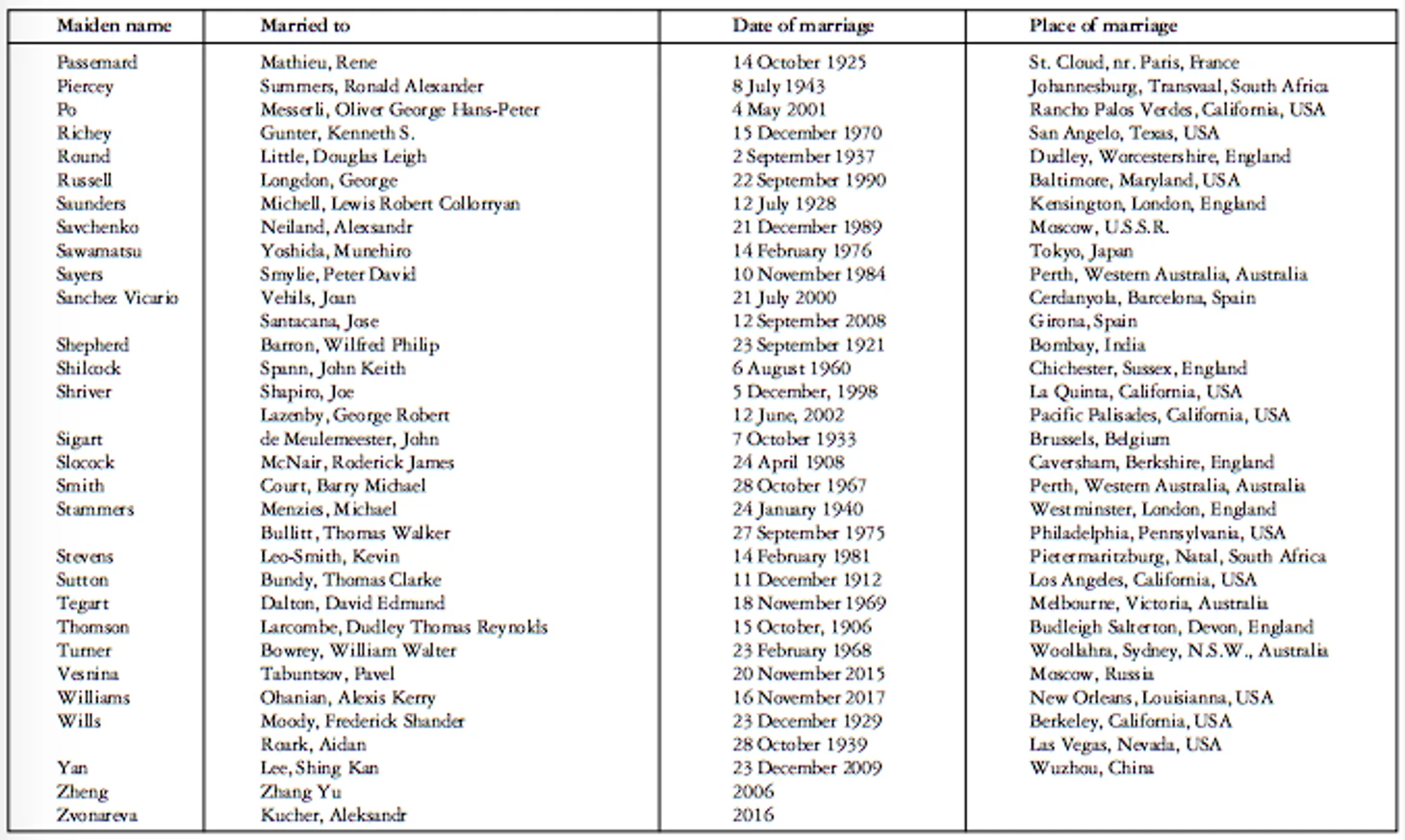 Из этого потрясающего документа можно узнать, например, что Крис Эверт была замужем трижды, а ее последняя свадьба состоялась в 2008-м на Багамах; а Елена Лиховцева, как и Штеффи Граф, вышла замуж в Лас-Вегасе. Списка кинозвезд и моделей, на которых были женаты, скажем, Джон Макинрой (дважды), Бьорн Борг (трижды) и Андре Агасси (Брук Шилдс), у «Уимблдона» нет. Свадьбу Мартины Навратиловой и вице-мисс Вселенная Юлии Лемиговой (15 декабря 2014, Нью-Йорк, США) турнир тоже предпочел не заметить.