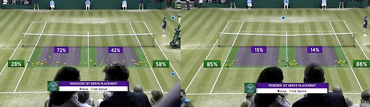 Роджер до конца матча практически без проблем держал свою подачу, а на приеме полностью использовал все недочеты подачи Нисикори. Их лучше всего вскрывает эта графика, сделанная в середине второго сета.