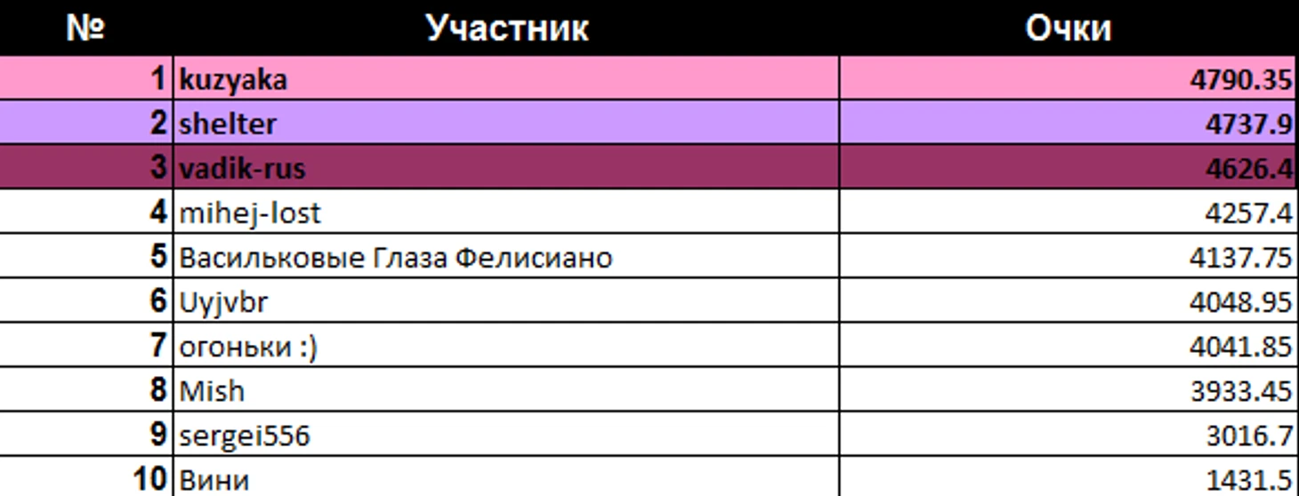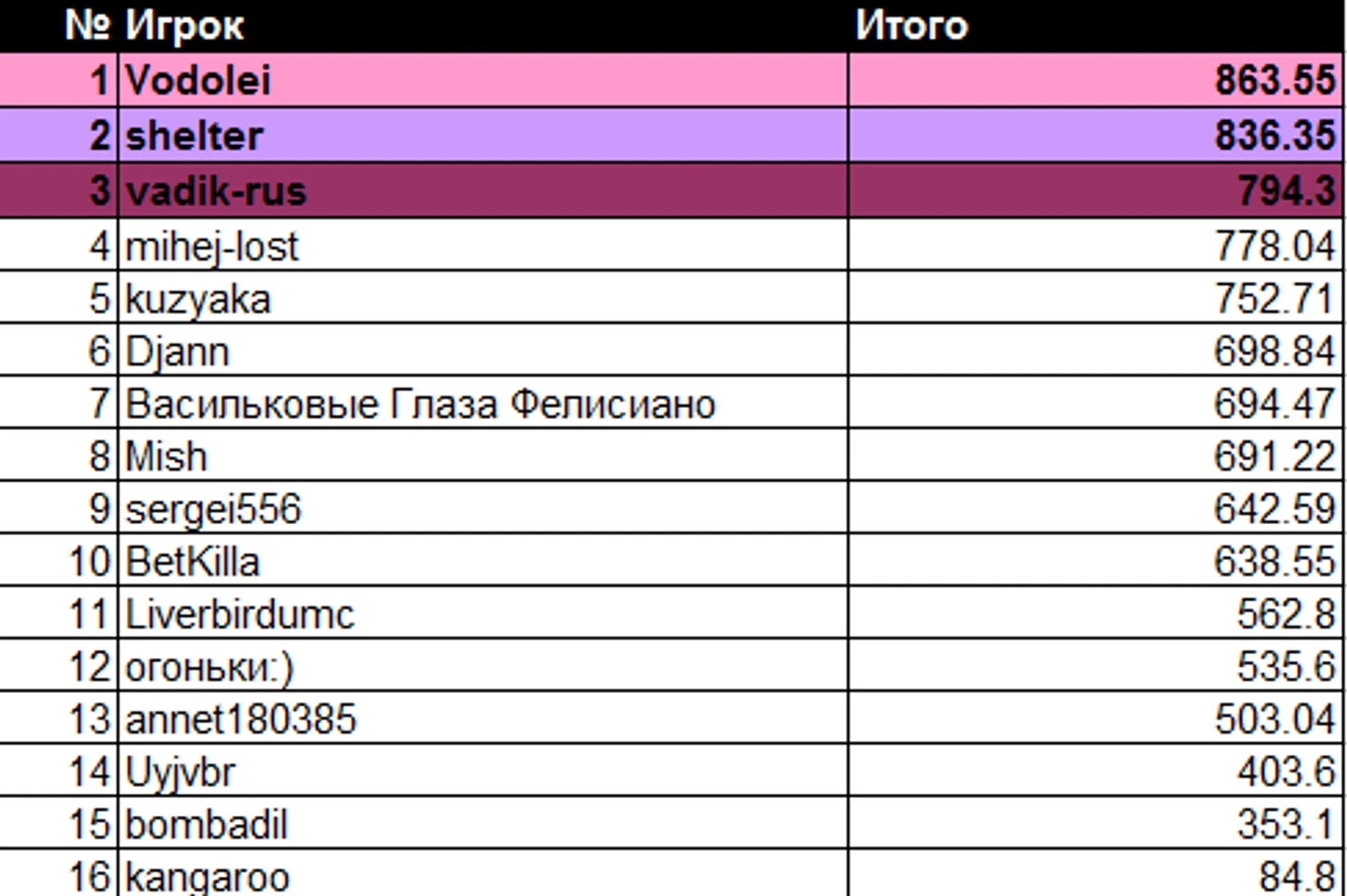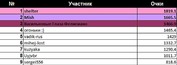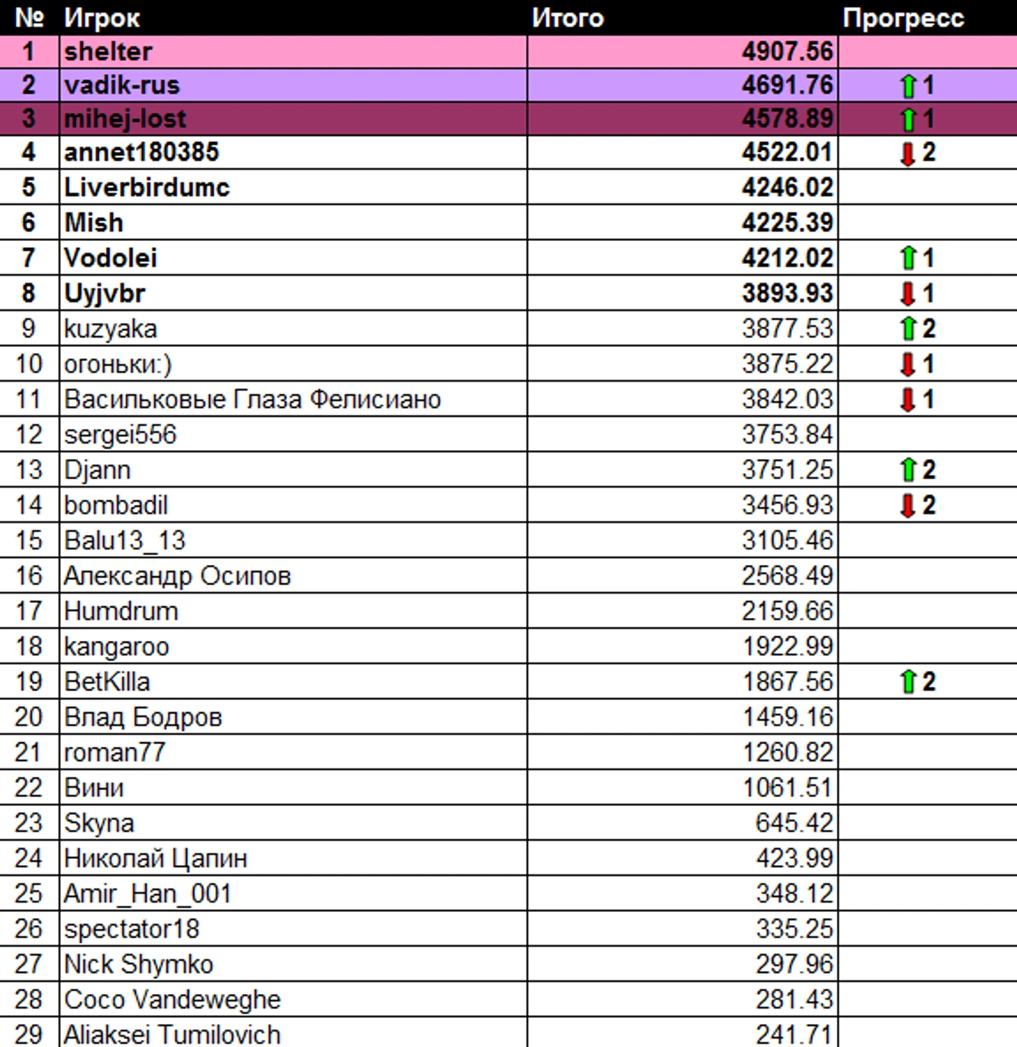 А самое большое падение вниз в чемпионской гонке у annet180385 и bombadil (-2 позиций)