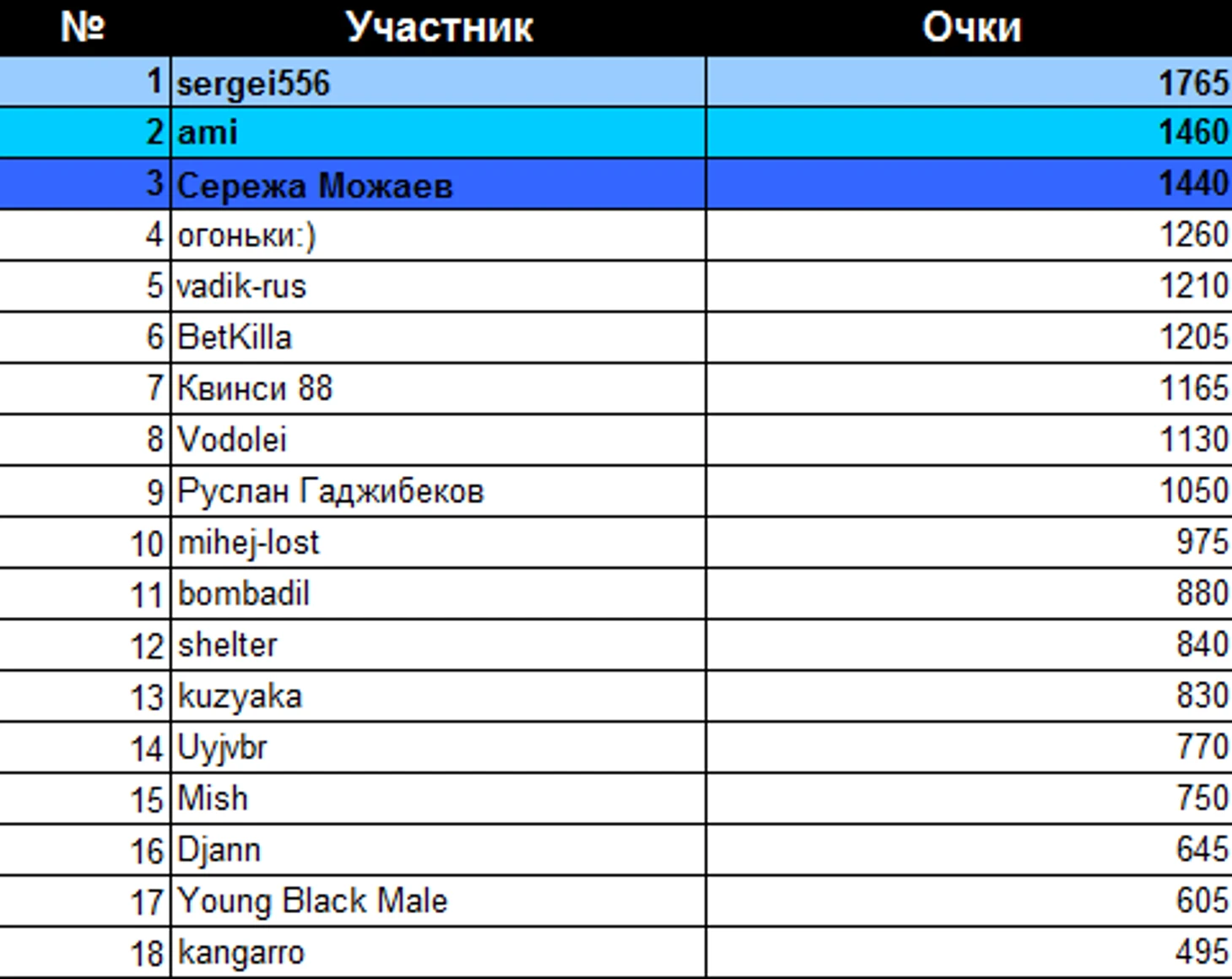Победителем 14-й недели становится sergei556! Поздравляем!