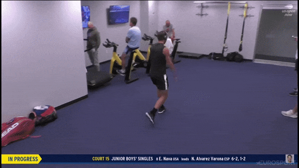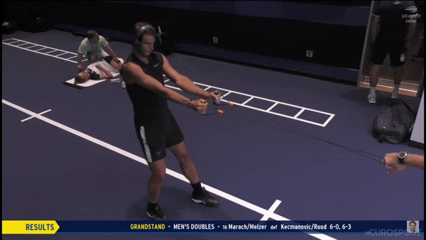 На US Open камеры в тренажерном зале помогли увидеть, как Рафаэль Надаль разминается перед матчем. И это четко спланированное, методичное и очень напряженное действо. Практически танец – только предельно сосредоточенный.