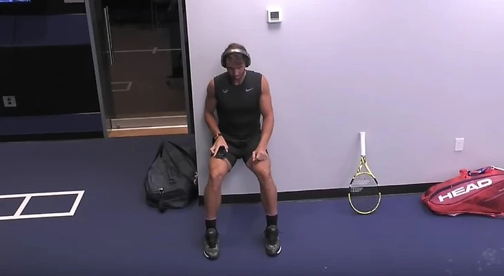 Разминка Надаля – еще одна деталь величия: почти танец с приседом у стены