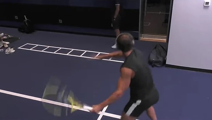• Небольшой перерыв, во время которого Надаль немного ходит, а потом в спокойном темпе возвращается к стенке приставными шагами.
