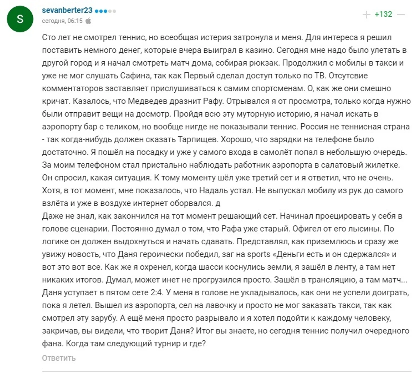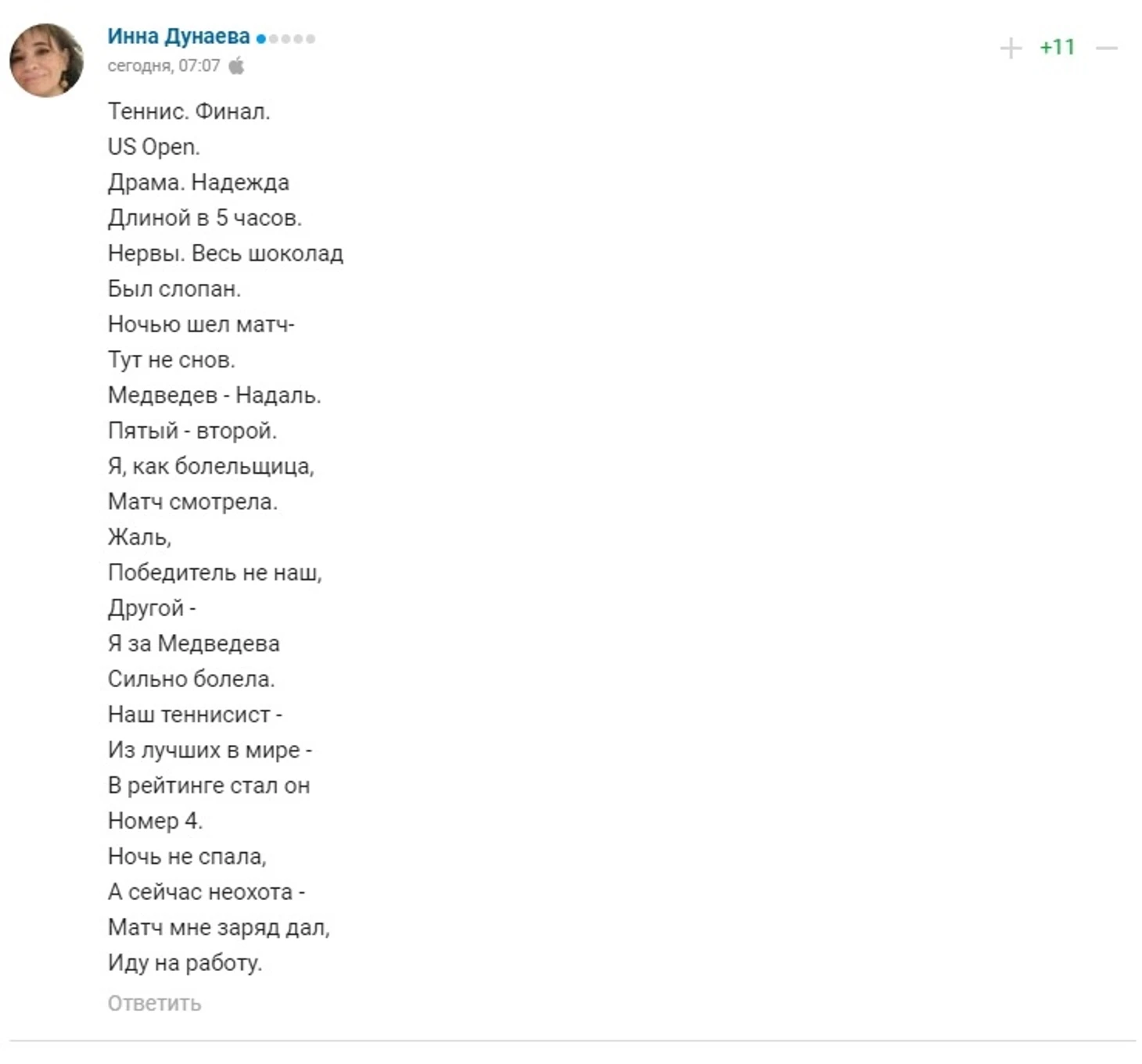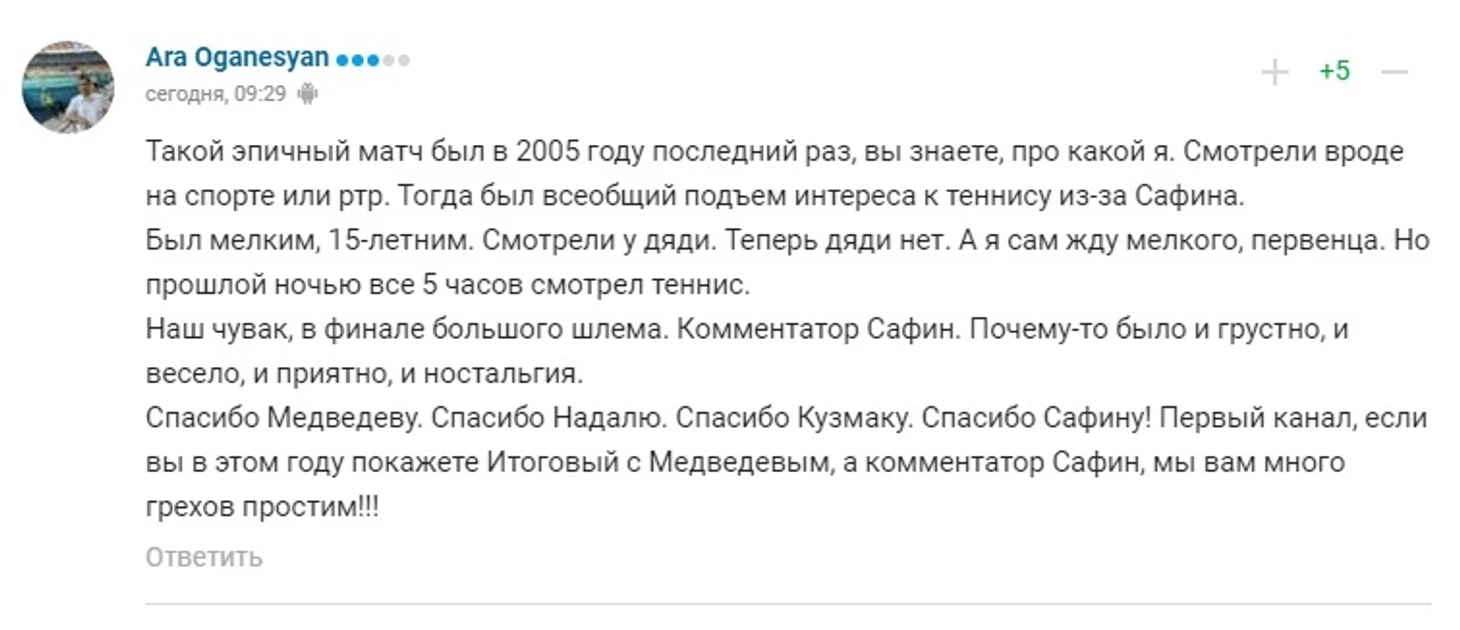 «Итог вы знаете, но сегодня теннис получил очередного фана». Как вы болели за Медведева