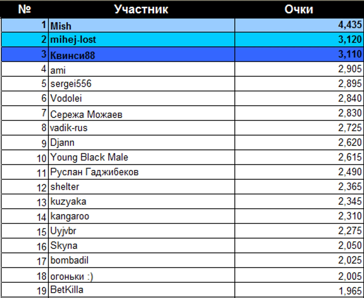 Победитель 15-го тура US Open: Mish