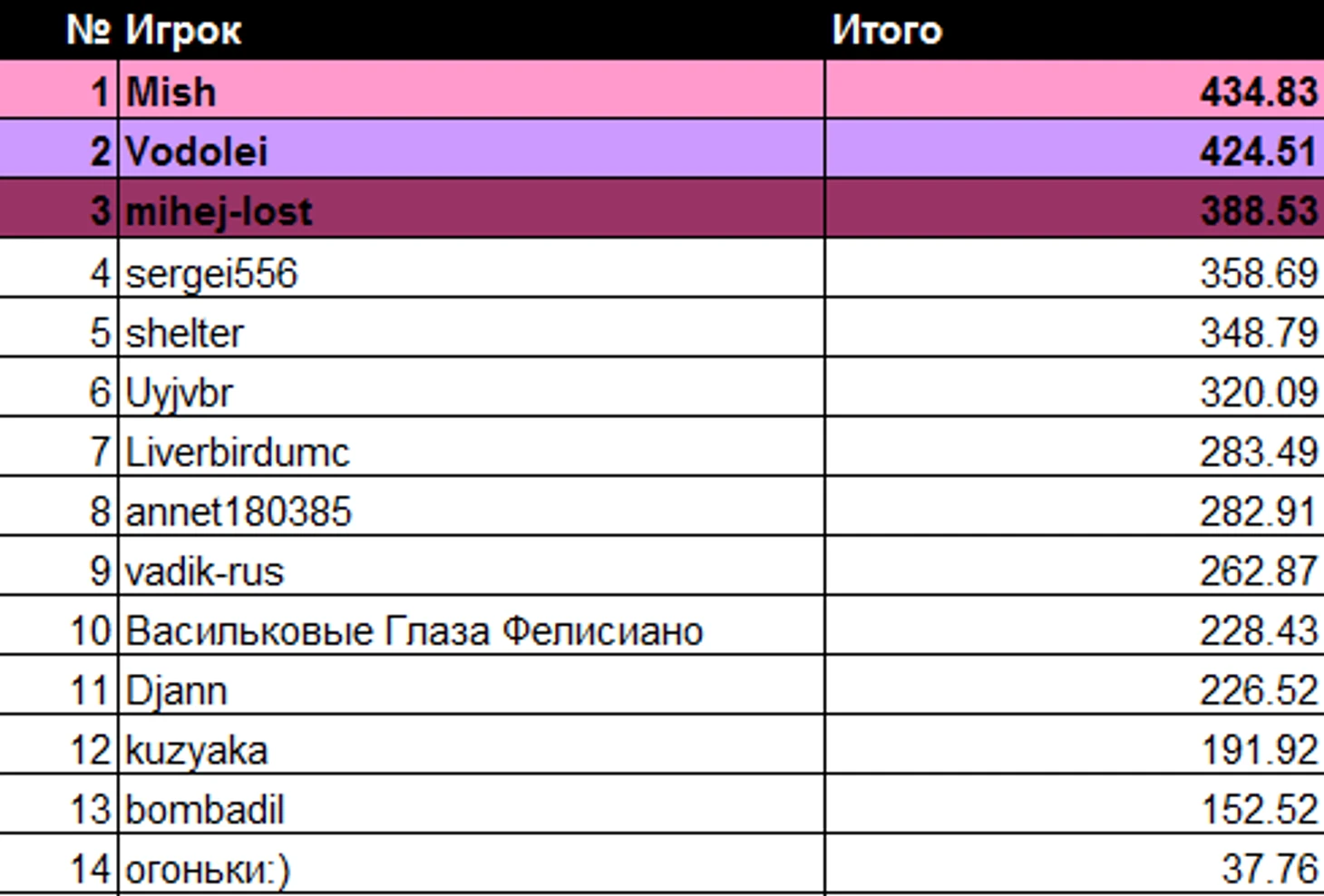 Победителем 17-й недели становится Mish! Поздравляем!