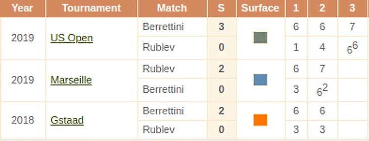 Фаворит матча Берреттини. Но шансы у Рублева есть. Когда долго и много выигрываешь, то появляется уверенность и невозможное становится возможным.