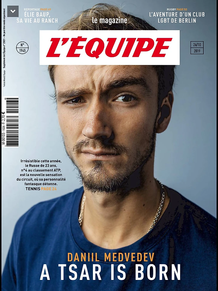 Чемпион двух «Мастерсов» сезона и финалист US Open Даниил Медведев стал героем кавер-стори французского журнала L’Equipe – еженедельного иллюстрированного приложения к одноименной газете.