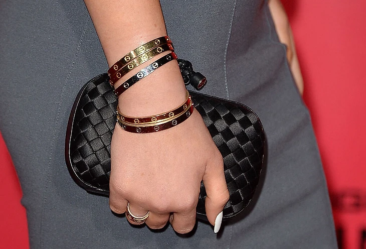 Браслет носили знаменитые пары: Фрэнк Синатра и его жена Нэнси, Софи Лорен и Карло Понти. Элизабет Тейлор и Эли Макгроу снимались в нем в фильмах. Теперь украшение замечают на Кэмерон Диаз, Анджелине Джоли, Кайли (на фото) и Кендалл Дженнер. В 1969-м классический браслет Love стоил $250, сейчас – $6 300.