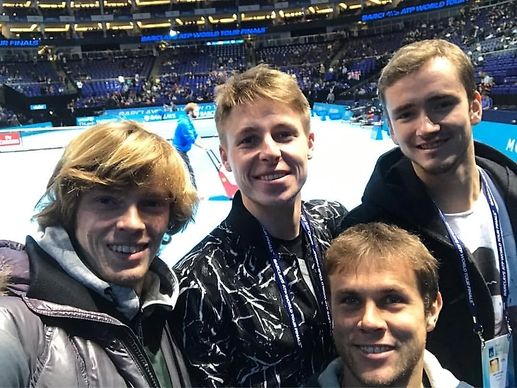 Медведев и Рублев этой весной вместе с Кареном Хачановым (на фото с Евгением Донским) составили первое русское трио, одновременно стоящее в топ-15 мирового рейтинга, а знакомы они с самого детства – по подсчетам Даниила, 16 лет.