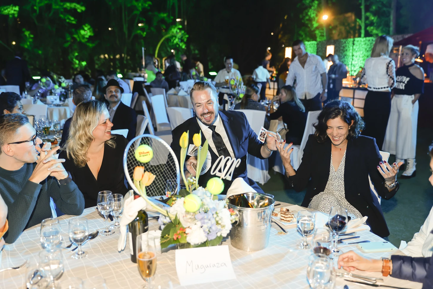 Карточный фокусник на гала-ужине удивлял Ким Клейстерс и Гарбин Мугурусу различными фокусами.