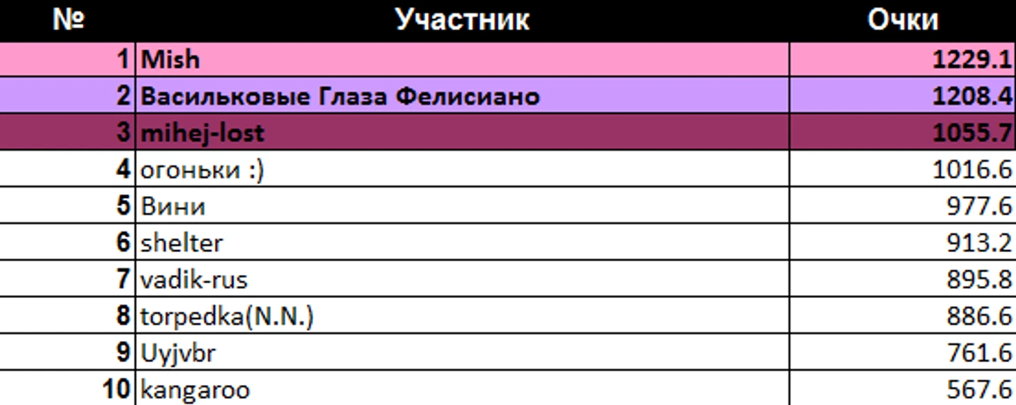 Победителем 2й недели становится mihej-lost Поздравляю!