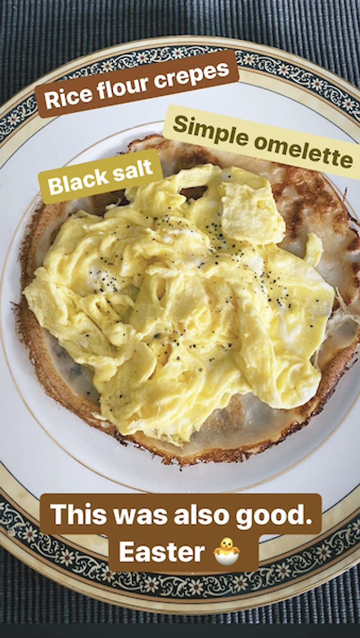 Пасхальное воскресенье отметилось омлетом с черной солью на блине из рисовой муки,