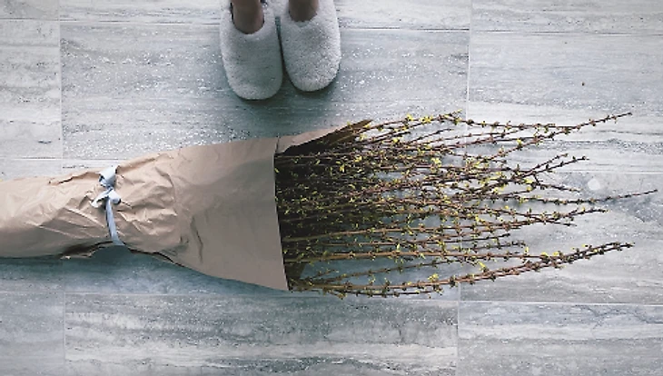 Как и мы, Мария украшает дом, только вместо фиалок и тюльпанов у нее премиальные цветущие ветки в человеческий рост: