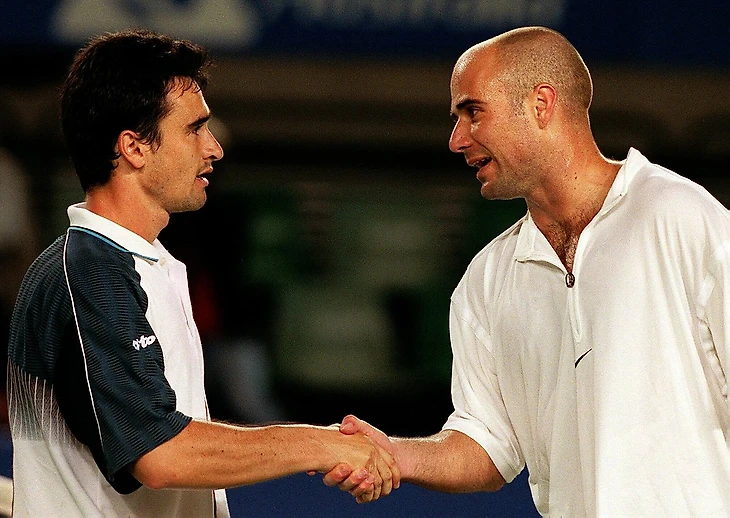 «Те слова остались в моей памяти, тем более что они исходили от Агасси. И когда я обыграл его на центральном корте, во время рукопожатия он сказал мне: «Ты сильно прибавил на харде». Я подумал: «Да-да, ты тоже». А перед выходом на корт они стояли с Брук Шилдс в туннеле и смеялись, пока я был рядом наедине со своими ракетками. Помню, как она обратилась к нему: «Заканчивай побыстрее, и пойдем ужинать». Это была вечерняя сессия, восемь часов. Через три с половиной я наблюдал, как она на том же месте плакала и утешала Агасси».