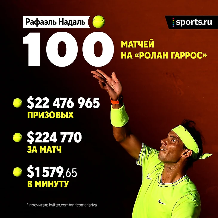 КПД Надаля на «Ролан Гаррос» – 98%. А сколько это деньгами?