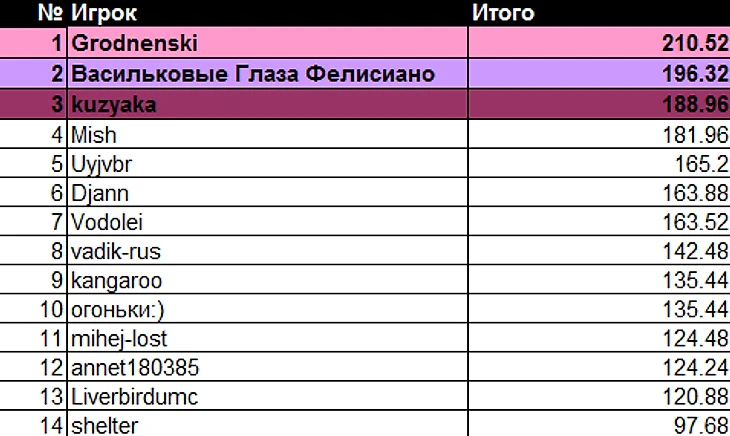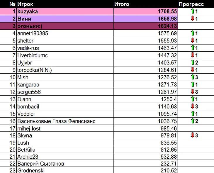 *Не забываем поздравлять чемпионов турнира в коментариях к посту ведь на их месте в любой момент можете оказаться и вы :)