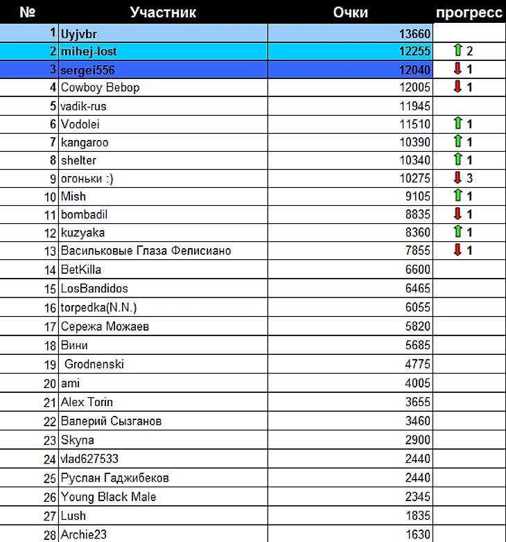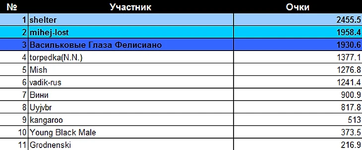 * Не забываем поздравлять чемпионов турнира в коментариях к посту ведь на их месте в любой момент можете оказаться и вы :)