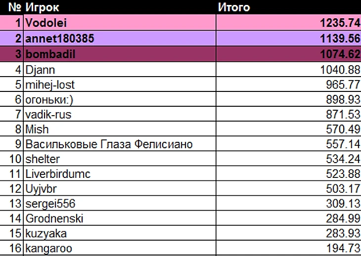 Победитель 10 недели Ролан Гаррос: Vodolei