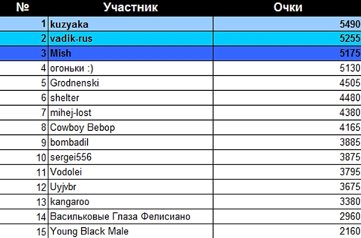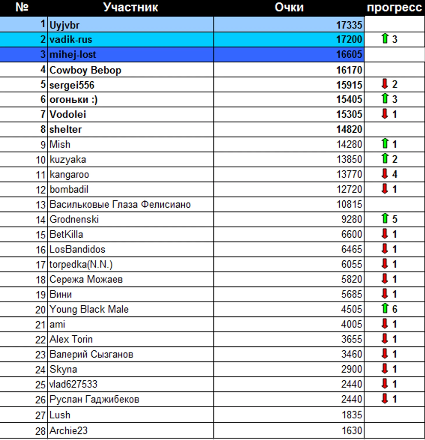 * Не забываем поздравлять чемпионов турнира в коментариях к посту ведь на их месте в любой момент можете оказаться и вы :)