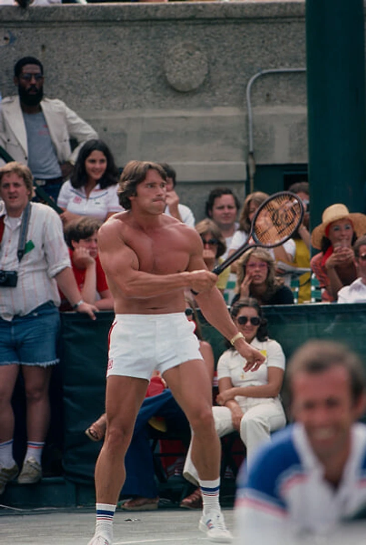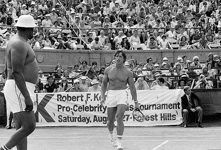 В 1977-м полуголый Шварценеггер играл в теннис на кортах US Open. Так он влился в клан Кеннеди и стал суперзвездой