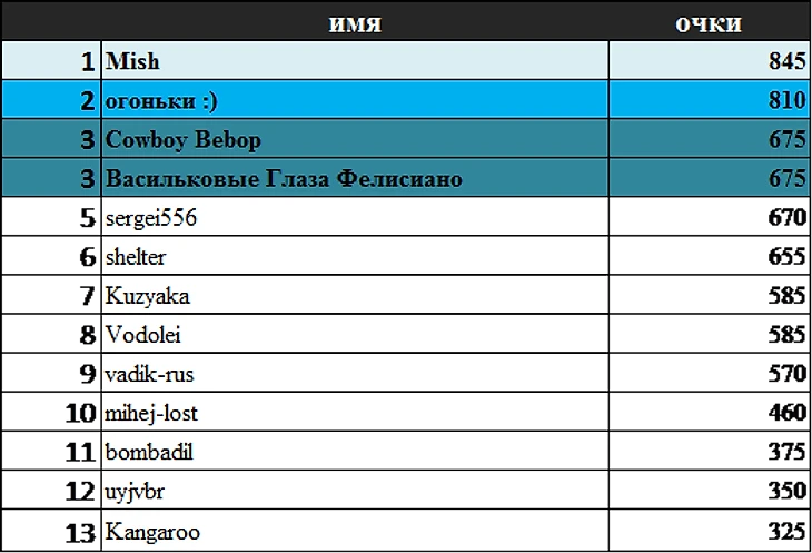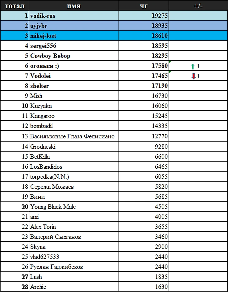 * Не забываем поздравлять чемпионов турнира в коментариях к посту ведь на их месте в любой момент можете оказаться и вы :)