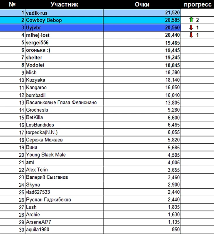 * Не забываем поздравлять чемпионов турнира в коментариях к посту ведь на их месте в любой момент можете оказаться и вы :)
