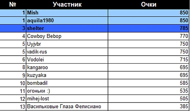 Победителями 13-го тура становятся Mish и aquila1980 Поздравляю!