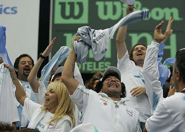 На матчах Кубка Дэвиса Марадона вообще появлялся регулярно и азартно болел за своих. Например, в 2006-м он даже прилетел в Москву на финал Кубка Дэвиса, все три дня провел на трибунах, а после поражения Аргентины аплодировал обеим командам.