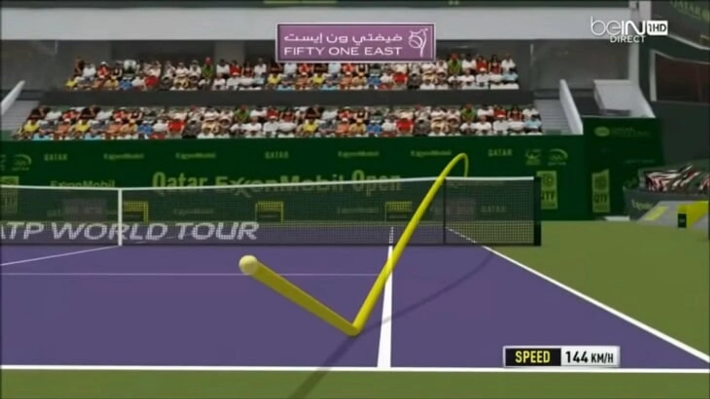Надаль достает мяч, когда он находится где-нибудь в 40 сантиметрах над землей, и пробивает так, что 70% времени полета мяч направляется в аут – но потом делает изгиб по дуге и приземляется в корте. Траектория по форме напоминает банан. Отсюда и название.