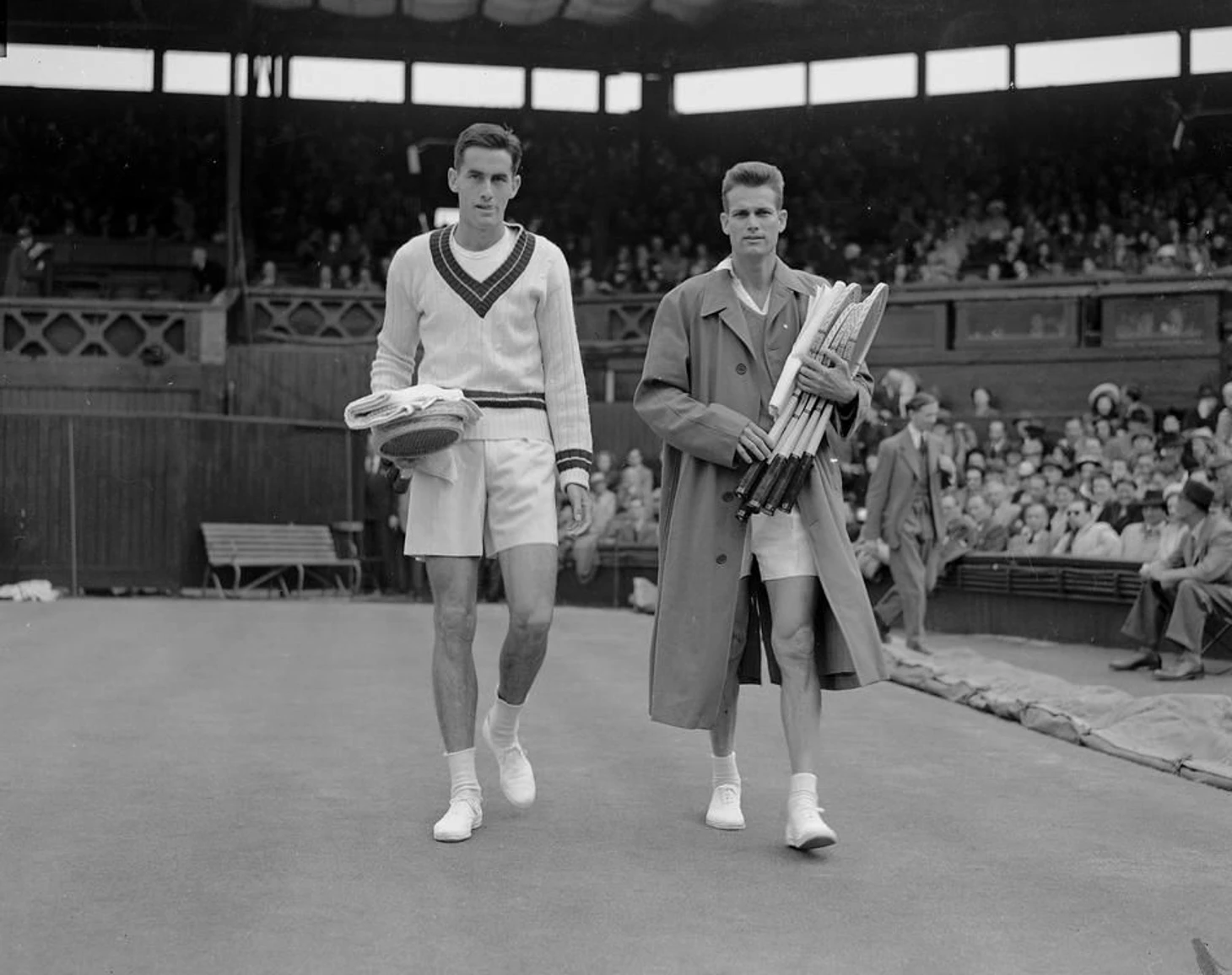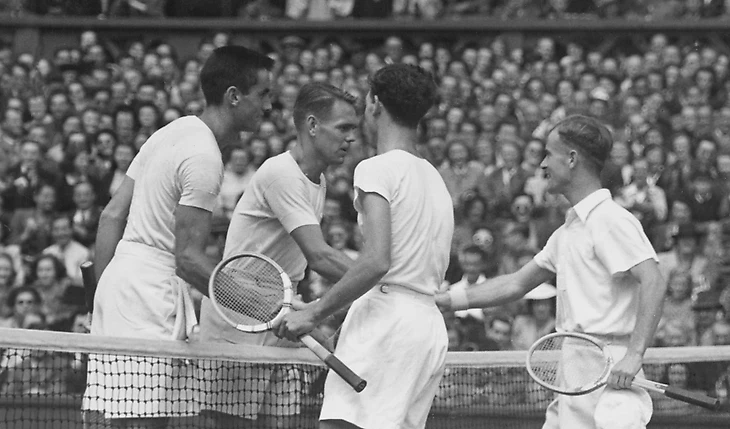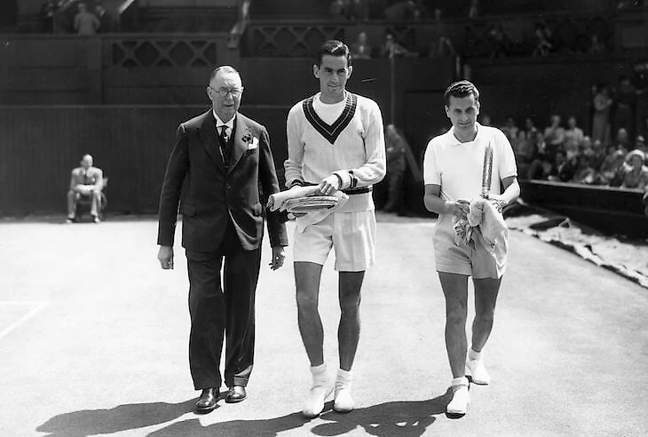 2 июля – день финала. Это первый одиночный финал «Шлема» для молодого Фалкенбурга и седьмой – для Джона Бромвича, который на семь лет старше (но первый не на домашнем турнире). Бромвич – очень странный игрок: левша с двуручным бэкхендом (редкость для тех времен), подающий и пробивающий смэши правой рукой. 15 тысяч зрителей на Центральном корте, большинство из которых поддерживает этого теннисиста с необычной техникой и видит в нем фаворита.
