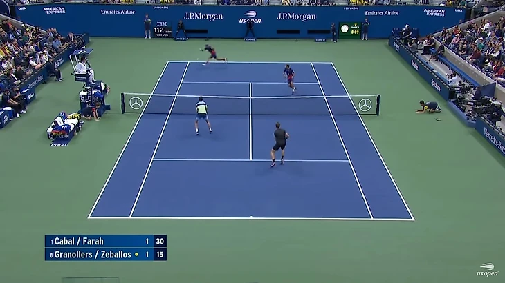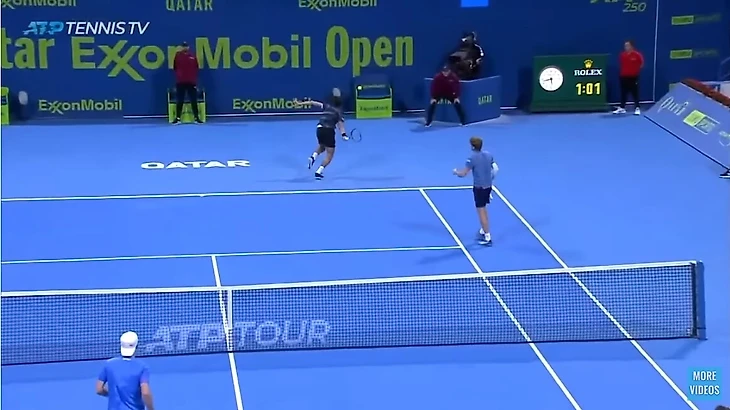 Если мяч попадает в постоянные принадлежности корта, то выполнивший удар проигрывает очко. Именно это и случилось с Гарином – и судья сразу объявил счет в пользу его соперника. При этом, если бы точно такая же ситуация произошла в парном матче, удар чилийца считался бы правильным, соперникам бы пришлось на него отвечать.
