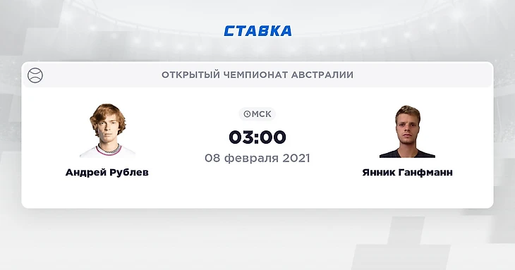 Андрей Рублев встретиться с немецким игроком Яником Ганфмоном . Этот немец предпочитает грунт, а в Австралии в этом году очень быстрый хард, поэтому я думаю побороться немцу не удастся тем более Рублев на много выше классом чем немецкий игрок, поэтому 3-0.