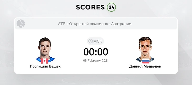 Медведеву не повезло в первом круге попасть на качественного игрока Вашека Поспишила Тут Даниил конечно фаворит но здесь я бы рассмотрел борьбу и победу Медведева к примеру 3-1 по сетам