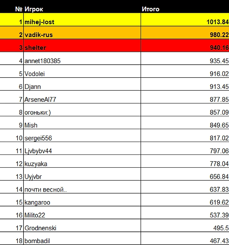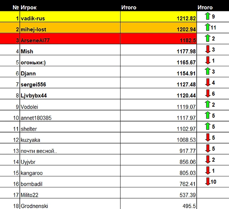 * Не забываем поздравлять чемпионов турнира в коментариях к посту ведь на их месте в любой момент можете оказаться и вы :)