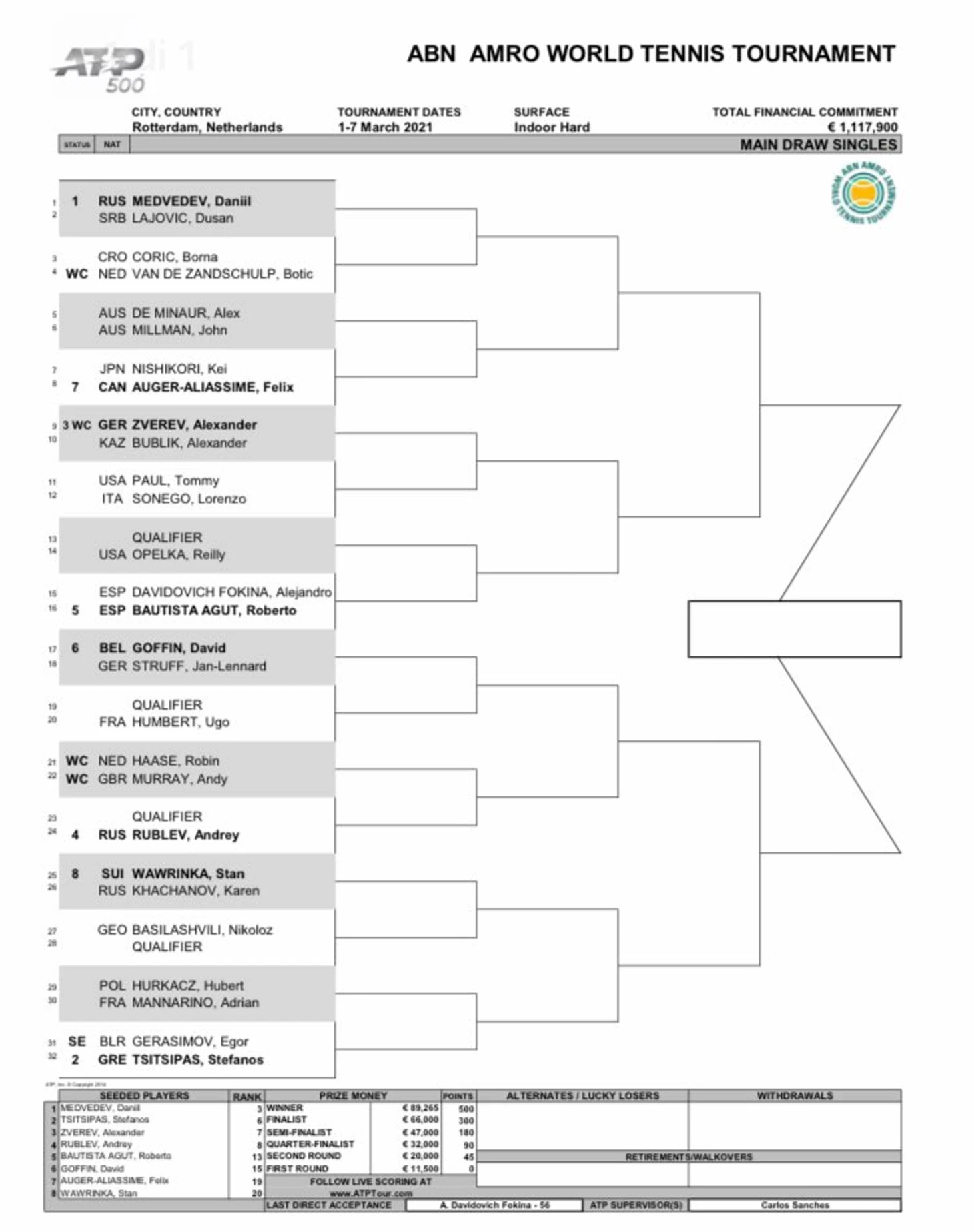 Австралия только закончилась, а уже состоялась жеребьевка нового турнира, АТР 500 в Роттердаме.