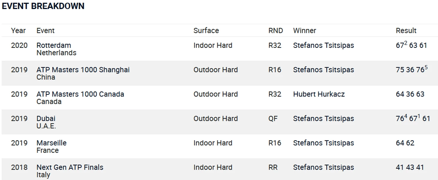 В непростом матче с Егором Герасимовым, набравшим ход на предыдущем турнире, и попавшим в сетку турнира в Роттердаме благодаря 1/2 турнира на прошлой неделе, Стефанос одержал победу в 2х сетах, 76 75, в каждом из сетов упустив брейк.