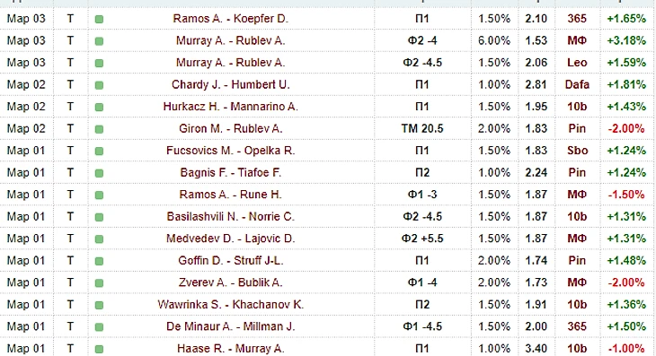 Вне зачёта Лайович принёс нам плюс в матче против Медведева (очень жалко, что я перестраховался с форой, хотел взять общую победу), а Рамос обыграл Кёпфера, будучи, по какой-то причине, андердогом (не знаю, что тут случилось с букмекерами).