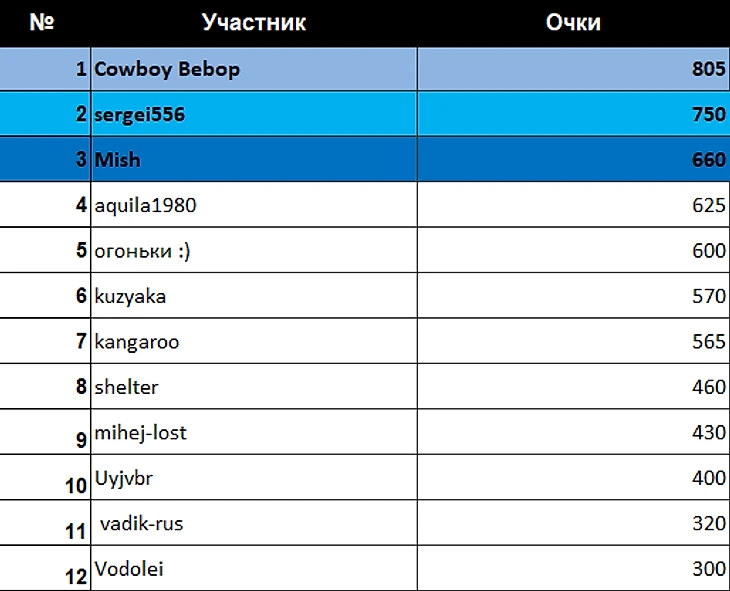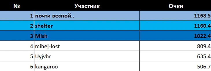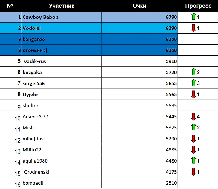 *Не забываем поздравлять чемпионов турнира в коментариях к посту ведь на их месте в любой момент можете оказаться и вы :)